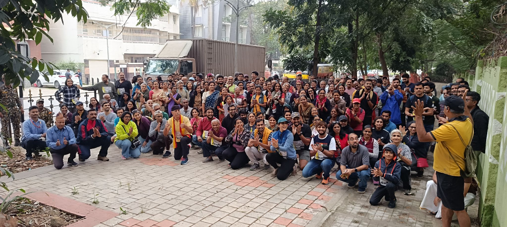 Look at the 20 pics below to see how we achieved this – over 7kms – in Jayanagar! It was the 13th walk of BLRWalkFest – over 200 walkers (yes, a record!) showed up at 7am to explore Joyful Jayanagar on foot(path), and get their 10,000 steps on a winter morning in Bengaluru.