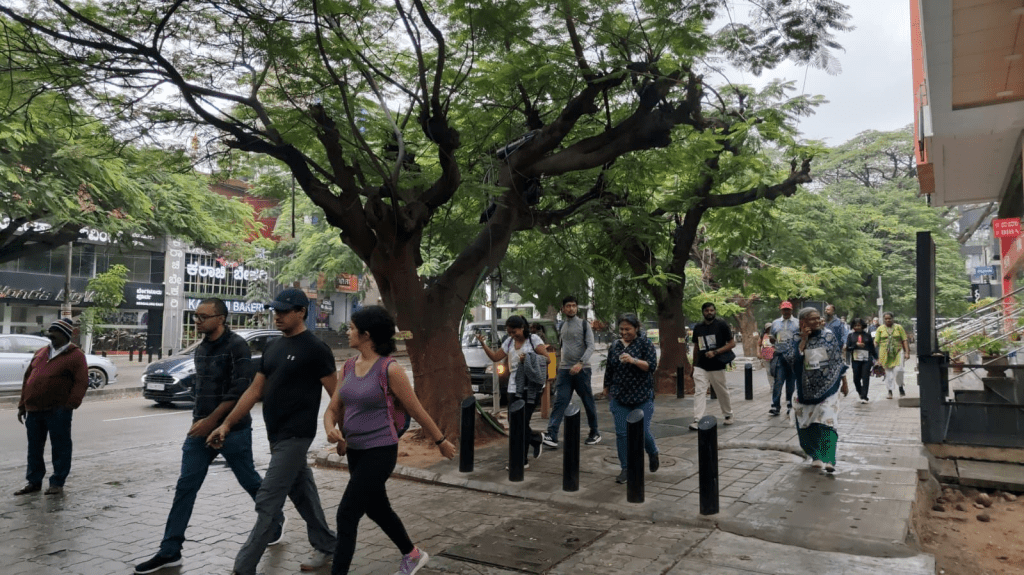 We walked through the Military Areas of Agram, past the old village of Domlur, along the hip Indiranagar 100Ft Rd, and finally in the heritage areas of Halasuru. Over 12,500 steps, a loop of 9.5km and entirely on footpaths – which were rated by the walkers. A unique example of citizen-govt collaboration to improve the city’s pedestrian infrastructure – on foot.