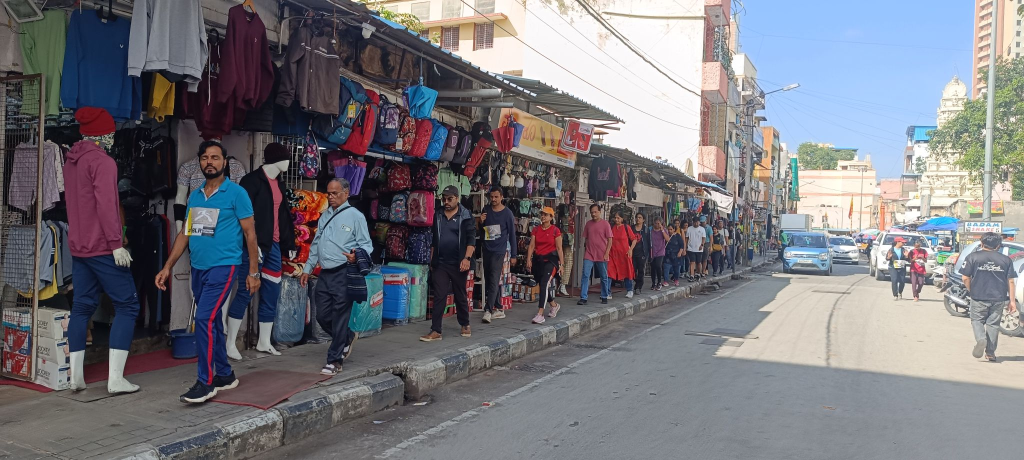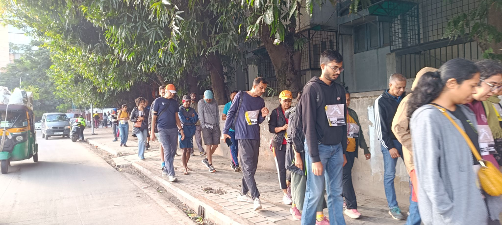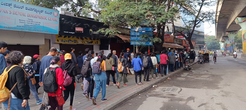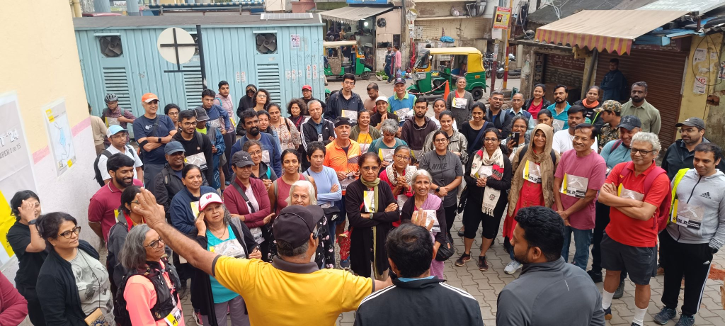 Historic Halasuru! Over 80 walkers showed up at 7am, and walked 12,000 steps, on footpaths, in a little over 3hrs while exploring the heritage areas of Halasuru – as well as testing & rating the quality of pedestrian infrastructure.